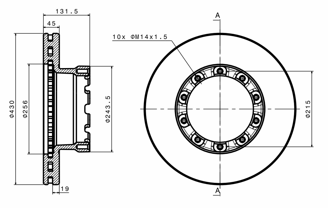 Brake disk type S2 Product info Table Material Weight Product NO. GG25 36.4 Kg 41110510001 Material GG25 Weight 36.4 Kg Product NO. 41110510001