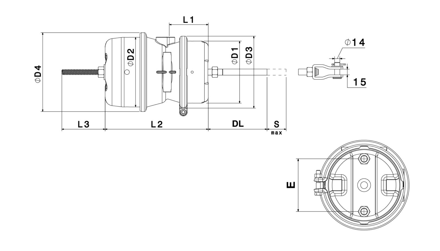 | Item | Chamber size | Product NO. | D1 | D2 | D3 | D4 | L1 | L2 | L3 | DL | E | Smax | Threaded Connection |