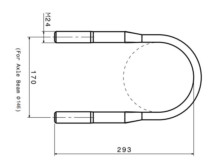 Spring U-Bolt (Trailing arms 100 mm wide) Product info Table Product NO. Washer Size Lock nut 21990010071 Ø 25 / DIN 125 M24 - 10 H / SW 36 Product NO. 21990010071 Washer Size Ø 25 / Din 125 Lock nut M24 - 10 H / SW 36